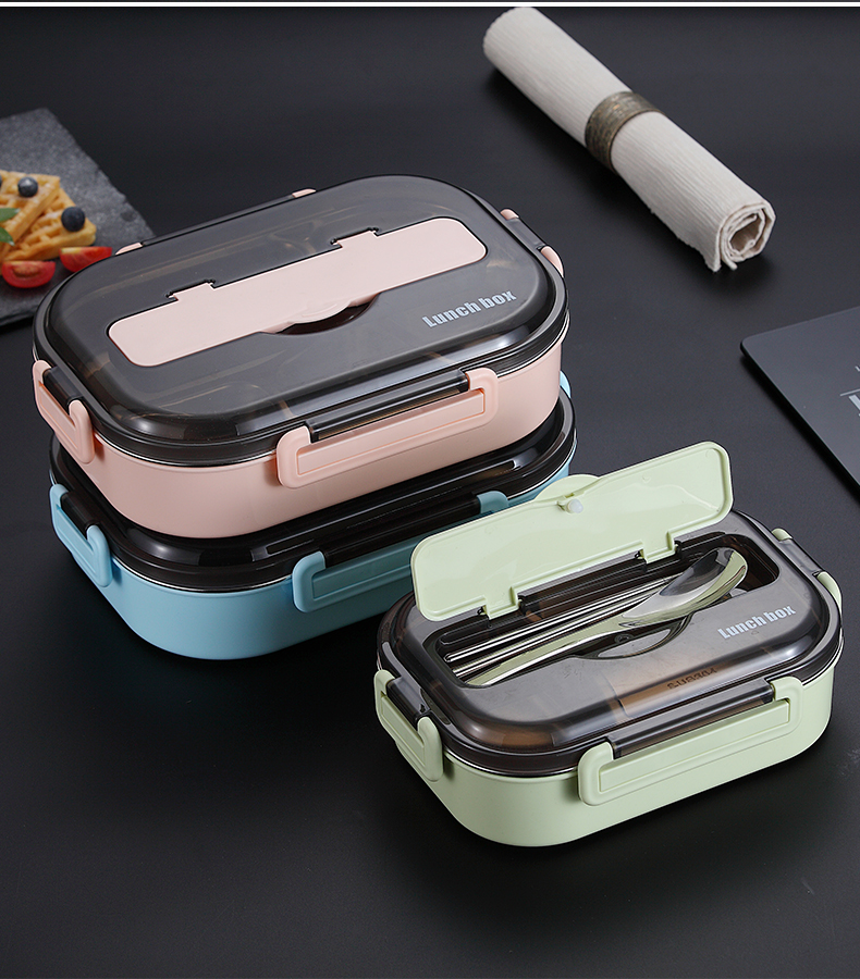 Overview:1. Insulated lunch box, more convenient to carry. You can choose different layer capacities according to your needs.2. Using multi-channel technology, the compartment interface is integrated with a sealing silicone ring to achieve the best leak-proof, heat-preserving and fresh-keeping effect.3. The inner tank is made of stainless steel, non-toxic and environmentally friendly, and the rice container is safer.4. The high-density PU foam insulation is close to the stainless steel PP shell in the tank, so that the food can reach the effect of insulation and shelf life.5. The shell is wrapped in exquisite PP material, soft and delicate, anti-pollution, and easy to clean.Features:1. Japanese-style lunch box with cutlery compartment for children's school use.2. Humanized design. The dish cover can be used to support the mobile phone.3.304 stainless steel and PP material. Healthy ecology.4. The plastic shell can be used in microwave ovens.5. Hot water can be added between the stainless steel and the plastic layer to maintain the temperature.Product information:Material: Stainless steelSize: as shownColor: green/blue/pink/blackPacking list:Lunch box set*1